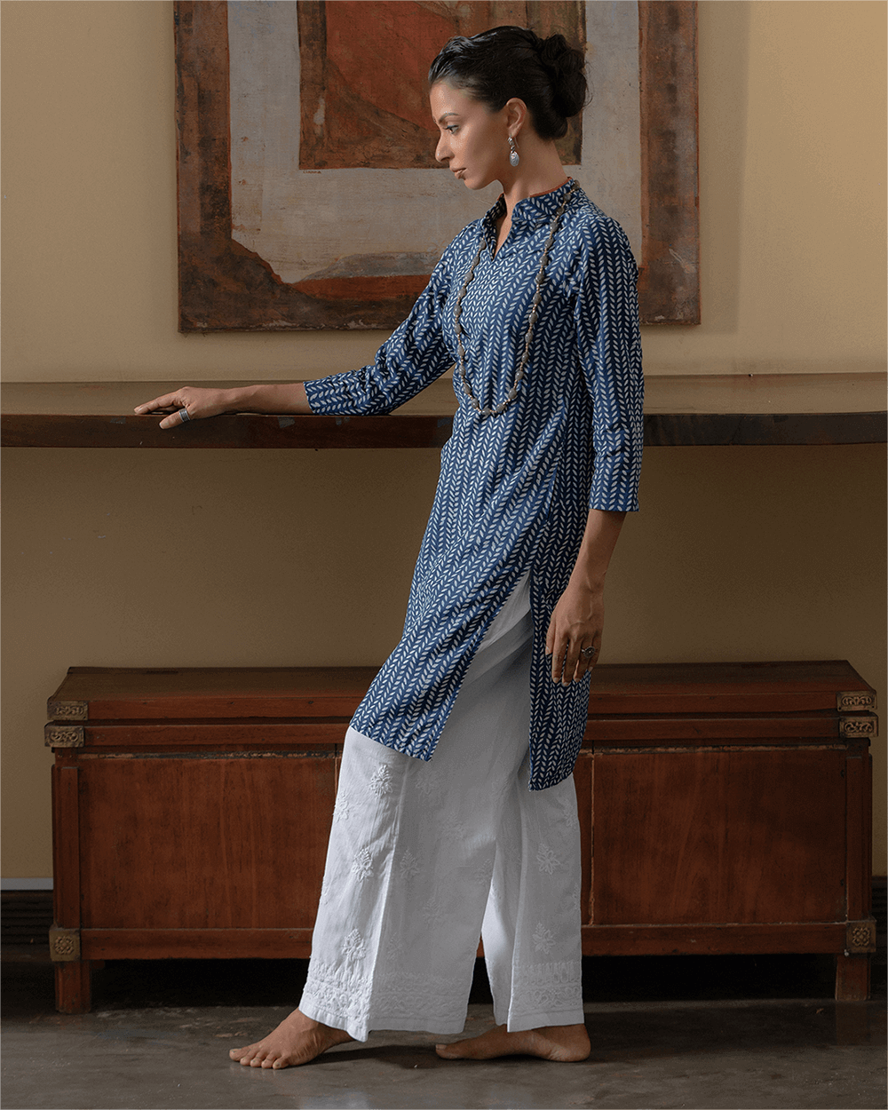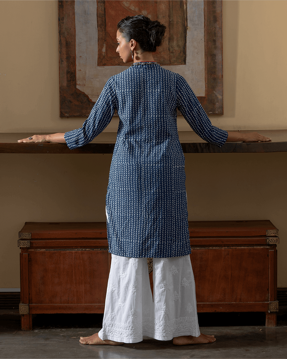Be effortlessly chic in indigo. This kurta epitomises everyday casual elegance, offering the perfect blend of comfort and style for your wardrobe. Whether you must dress to impress at work or meet friends for lunch, an indigo-dyed kurta can bring sophistication to any occasion.