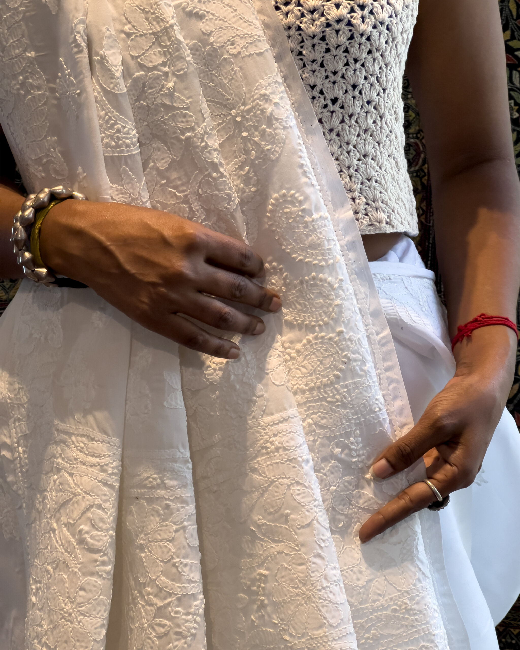 Each piece of Chikan work fabric, boasts a floral pattern or motif and is a true labour of love.