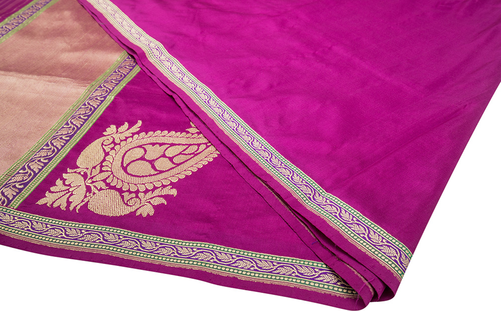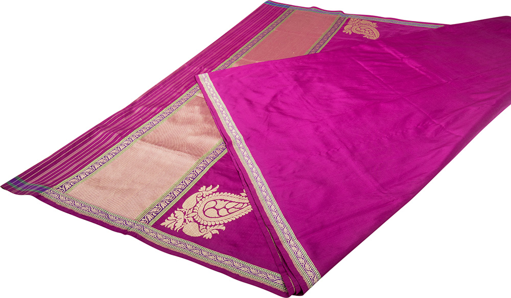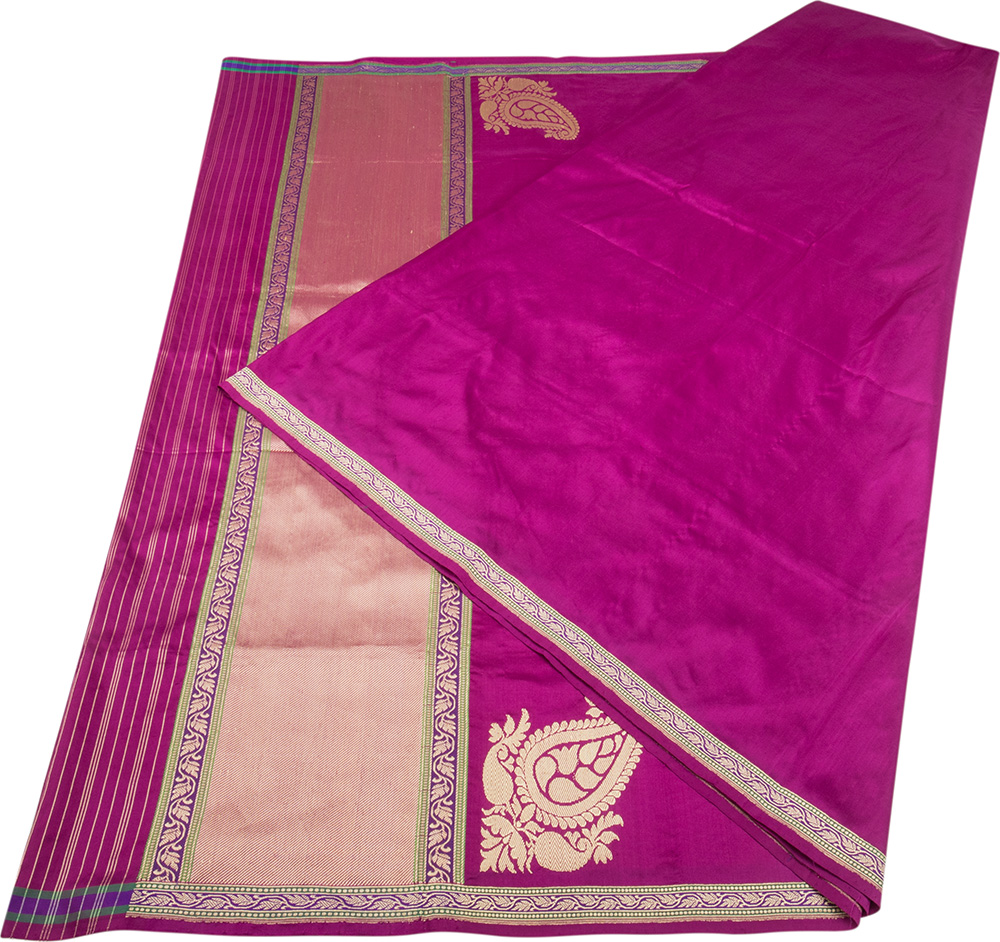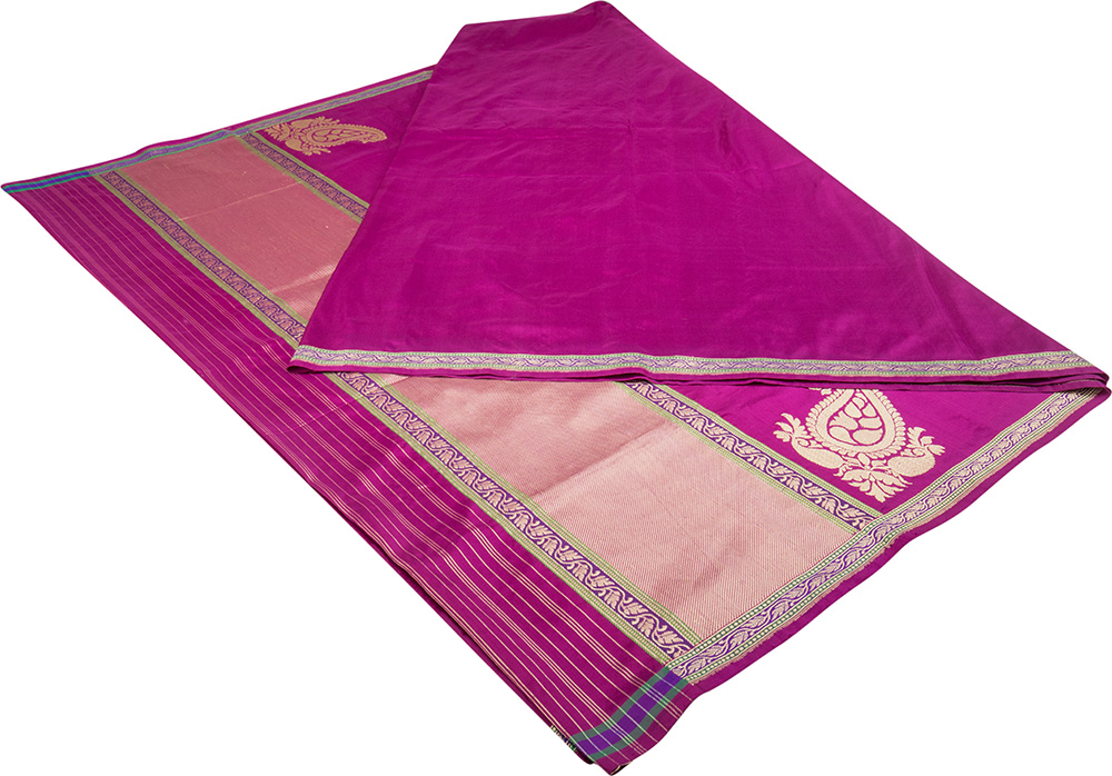 Benaras silk on silk – plain body with karhua border and koniya pallu, with blouse.