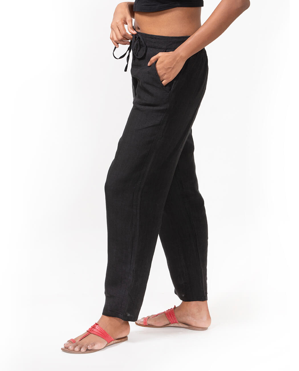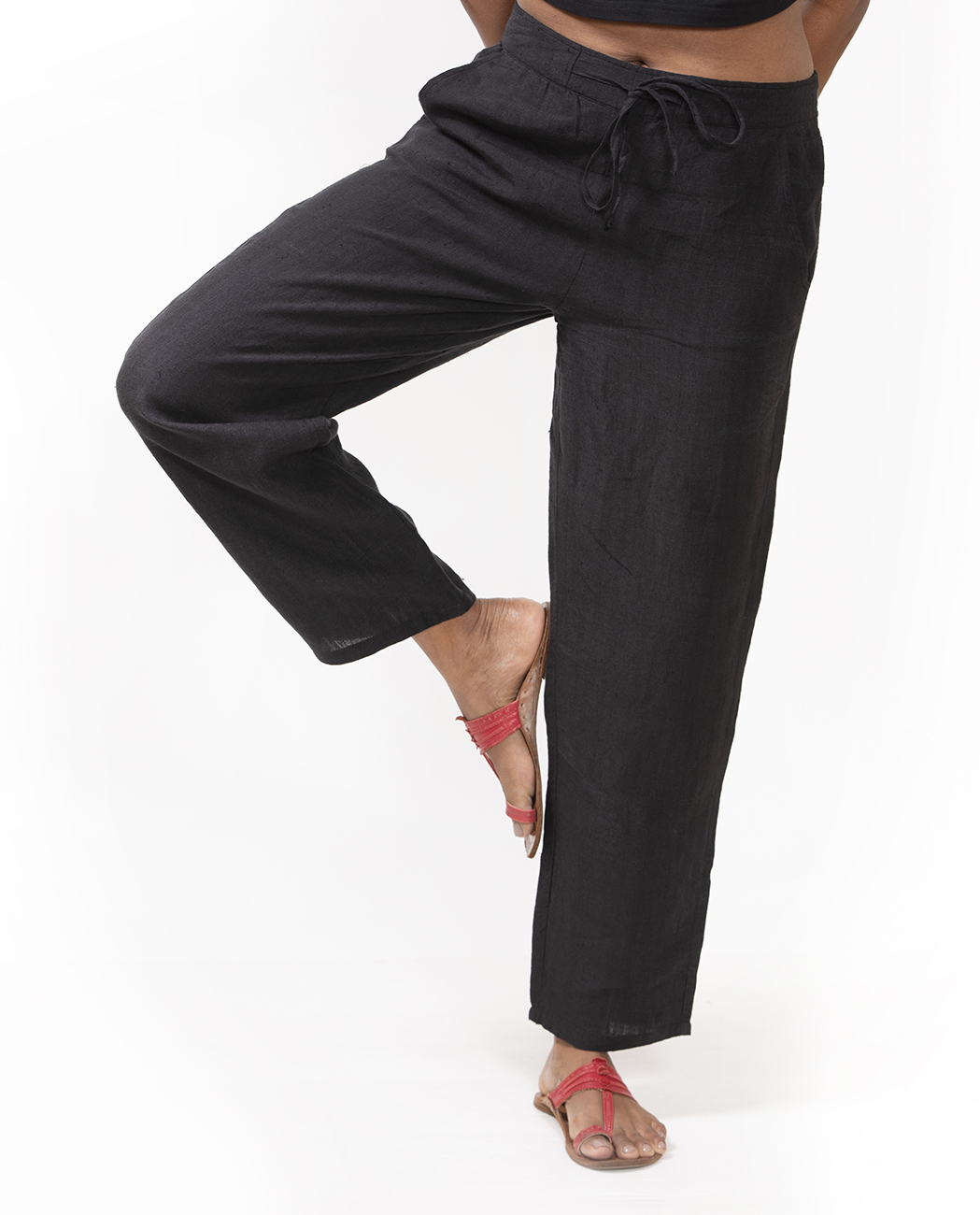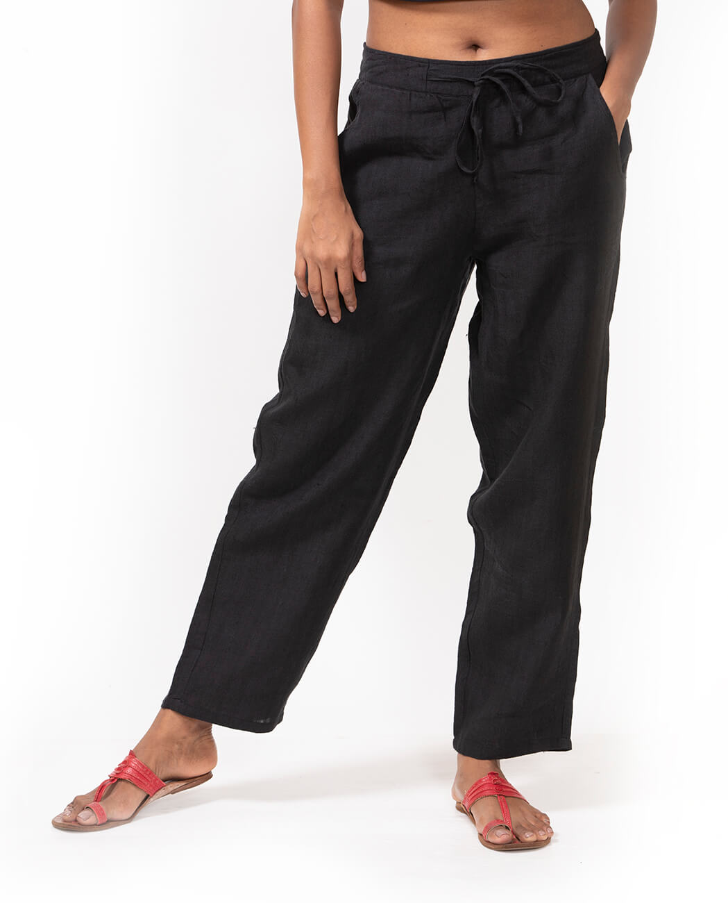 Our Suruti Black Fulia Linen Pants have as much attitude as you could want, but, still feel as comfortable as something you would wear at home, a rare achievement made possible thanks to the inclusion of an elasticated waist that doesn’t take the edge away from the straight cut, ankle-length design.